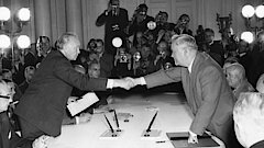 Vor siebzig Jahren, im September 1955, trafen in Moskau erstmals Regierungsdelegationen der Bundesrepublik Deutschland und der Sowjetunion aufeinander. Am Ende der fünftätigen Verhandlungen einigte man sich auf die Aufnahme von diplomatischen Beziehungen im Gegenzug für die Rückkehr der letzten deutschen Kriegsgefangenen aus Russland. Für Bundeskanzler Konrad Adenauer sollte sich dieser Handel als großer innenpolitischer Erfolg herausstellen, obwohl die deutschlandpolitische Bilanz der Moskau-Reise ernüchternd ausfiel. Allerdings schlug sie, und hierin liegt ihre langfristige Bedeutung, das erste Kapitel der bundesrepublikanischen Ostpolitik auf.